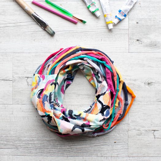 Než ho na krk dáte, vrstvy látky prsty oddělte a načechrejte. Dejte kolem krku a ještě jednou omotejte. Špagátky si upravte tak, jak chcete. Je na vás, jak moc je ukážete.