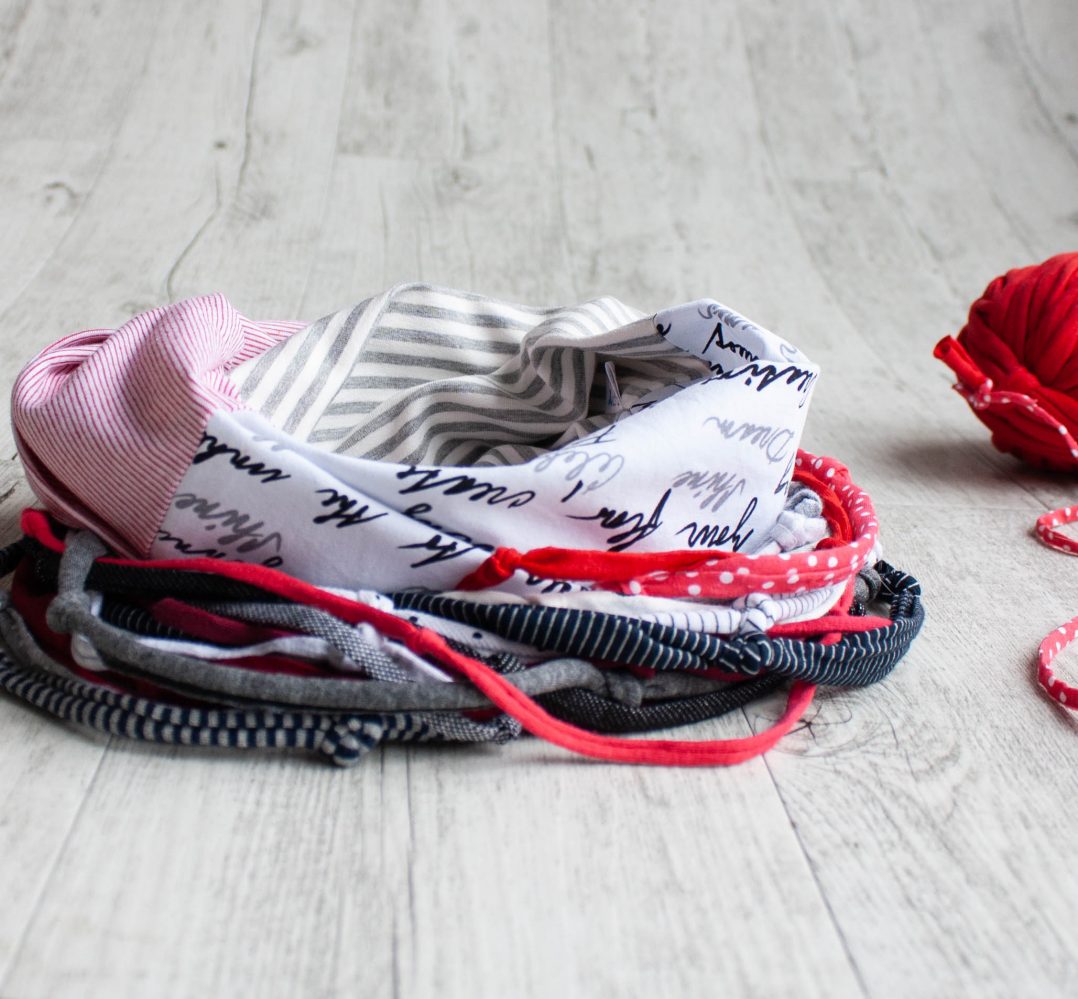 Originální nákrčník z dílny HAPPY HELEN – spojení prémiového bavlněného plátna / bavlněného úpletu a bavlněných špagátů.