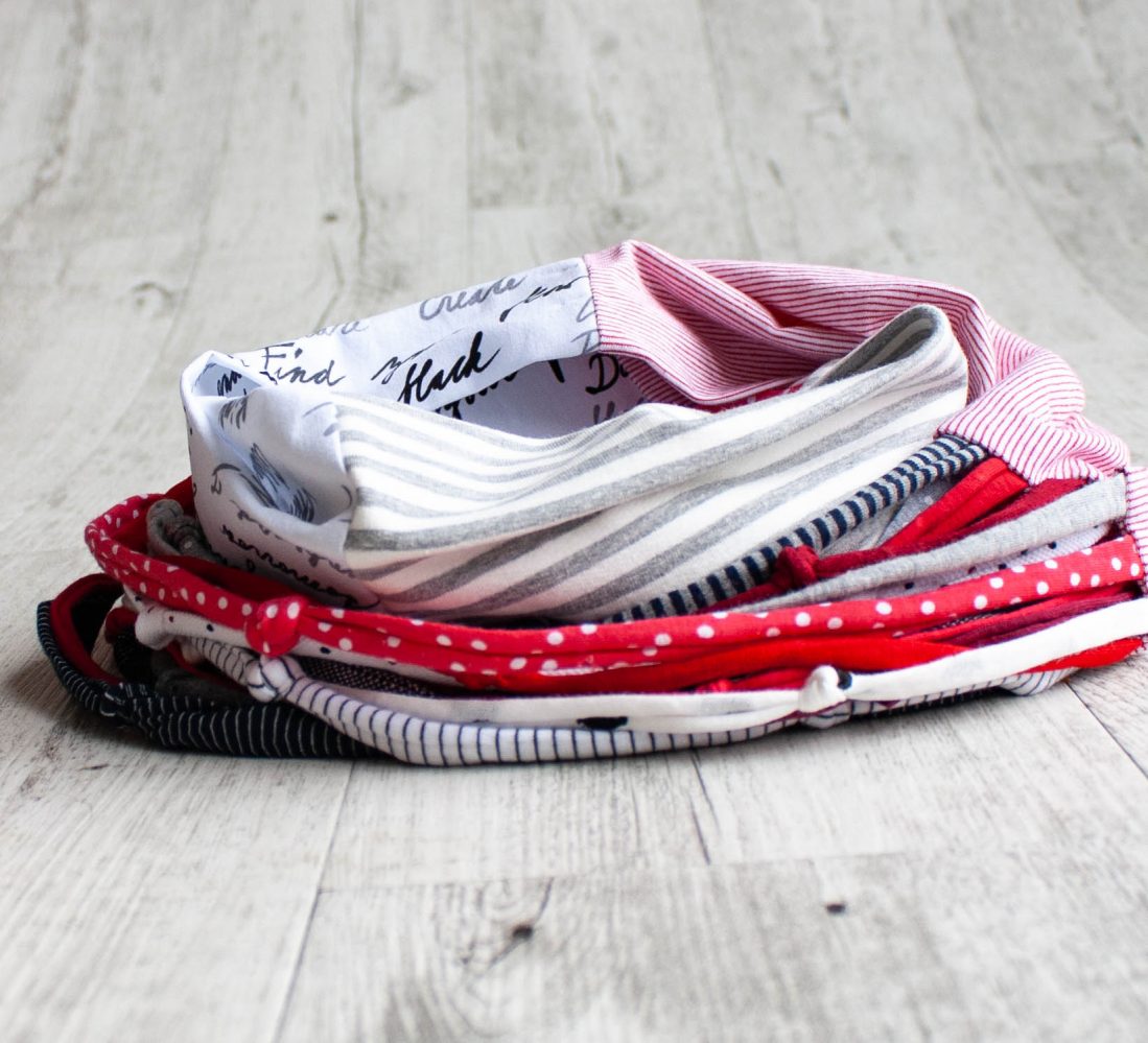 Fred má rozměr cca 142×24 cm, je lehce od krku, tak akorát. Pokud máte raději šátky více od krku, podívejte se na variantu Fred Maxi, je v délce cca 168×24 cm.