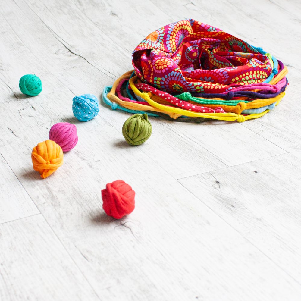 Než ho na krk dáte, vrstvy látky prsty oddělte a načechrejte. Dejte kolem krku a ještě jednou omotejte. Špagátky si upravte tak, jak chcete. Je na vás, jak moc je ukážete.