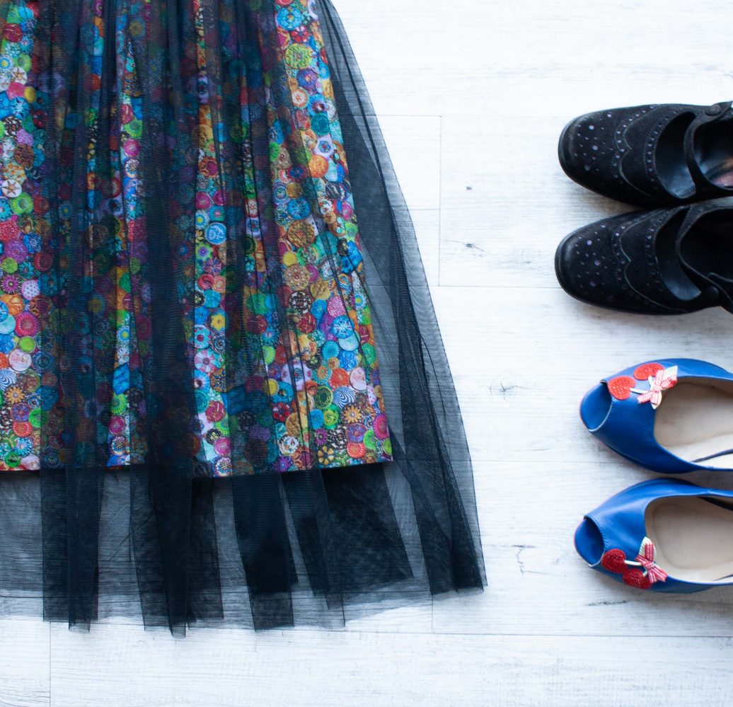 Spodní sukně z prémiové bavlněné látky – příjemné bavlněné plátno pod závojem z černého tylu. Střih do „A“ kopíruje boky, nepřidává tak na objemu, zatímco lehounký splývavý tyl se navrch vlní kolem vašich boků. V pružném pase je všita jemná guma, díky ní pas hezky přilne, nebude se vytahovat.